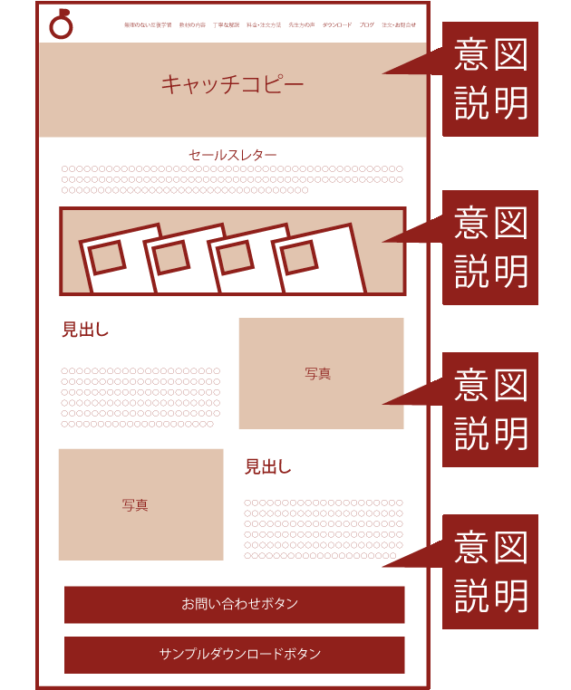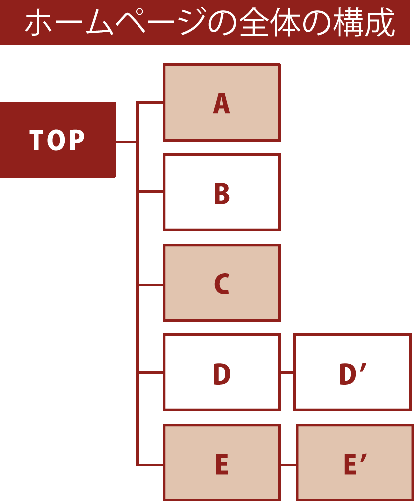お打ち合わせでお話をお聞きして必要なページを割り出します。構成図を作成して「お問い合わせ」に繋がるようにホームページ全体を分かりやすくご提案します。