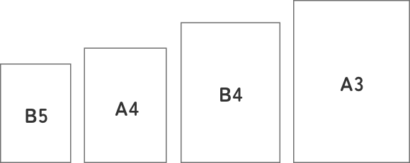 B5サイズ(182mm×257mm)のチラシデザインコンパクトで持ち運びしやすく、置き場所を取りません。手配りや新聞折込、ポスティングチラシとしても活用可能。B5サイズの身近なものには、ノート、教科書や雑誌があります。