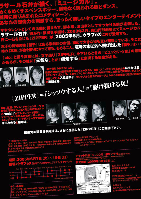 作品タイトルそのものをデザイン化したロゴマークを軸に、ポスターとチラシを制作。表面では視覚的なインパクトで観客を惹きつけ、裏面では整然としたレイアウトで公演情報を確実に届けます。