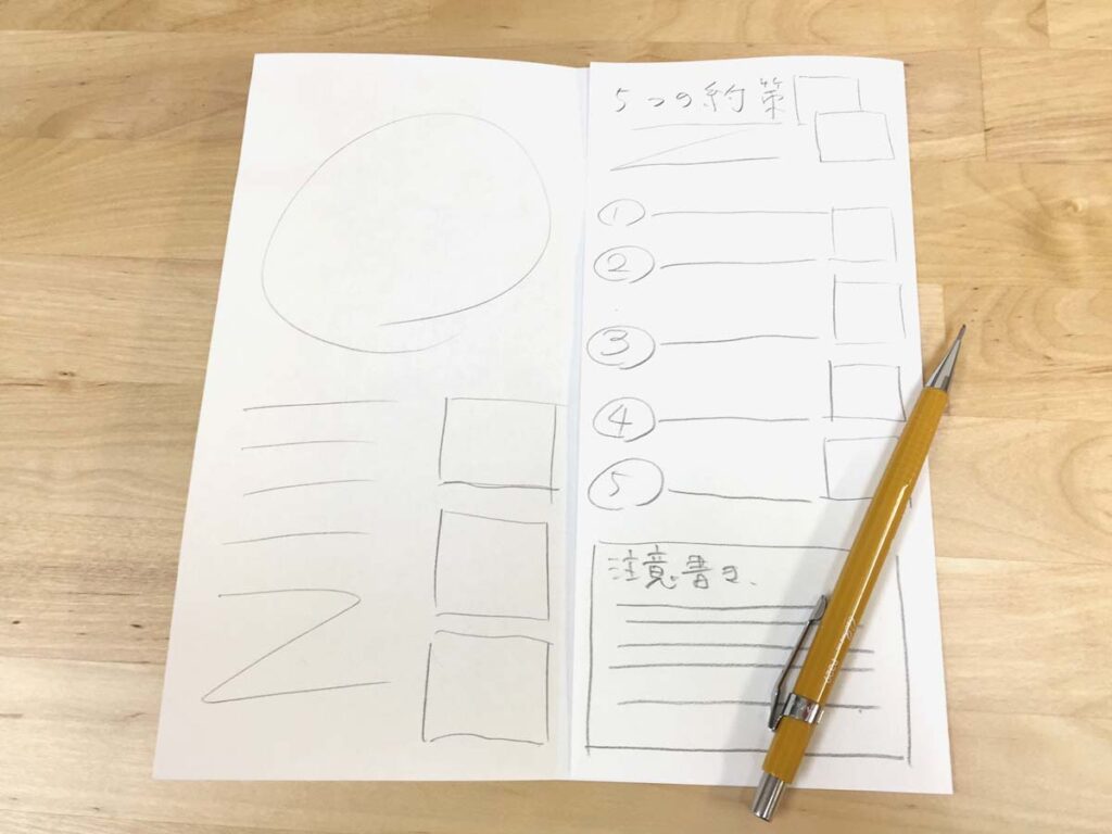 この構成(台割り)がしっかり固まれば、リーフレット作りの6割は完成したも同然です。あとはこの設計図をもとに、見栄えを整える本格的なデザインに移っていきましょう。