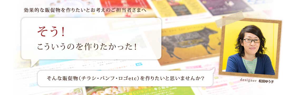 私のように男性が女性相手にお仕事する場合、とっても強い味方になってくれます。女性デザイナー松田さんの感性、アイデアが男性には思いつかない物を生み出してくれるはずです。